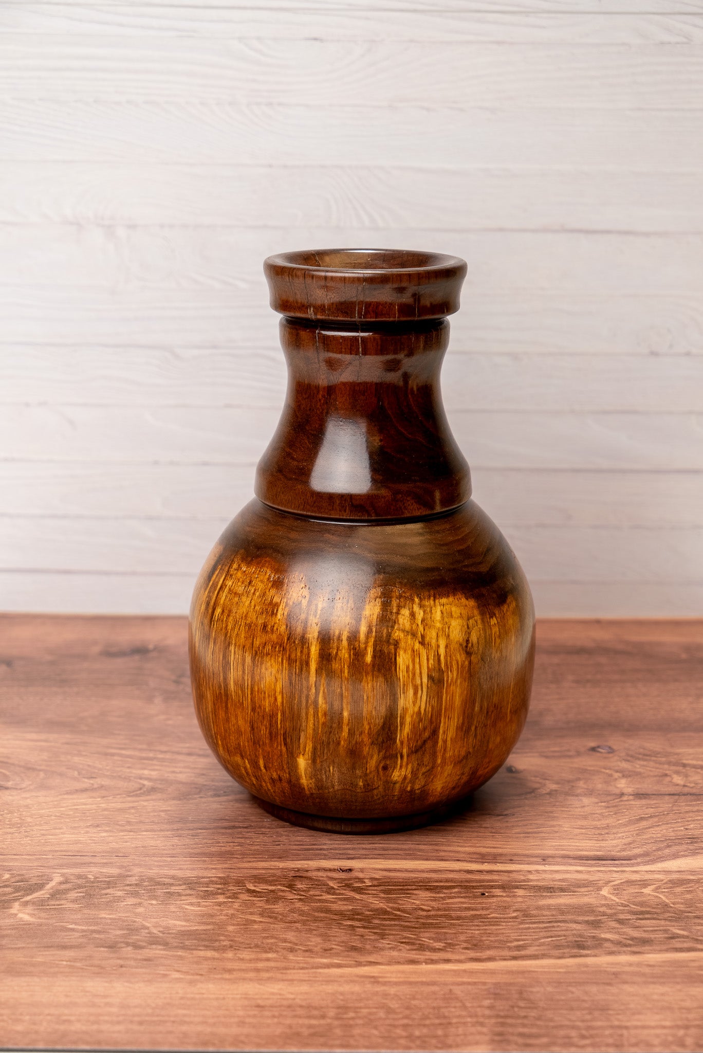 Warm, rich grain patterns and natural aging marks give this walnut vase depth and presence. It’s finished to highlight its organic beauty, making it a meaningful and timeless accent for any space.